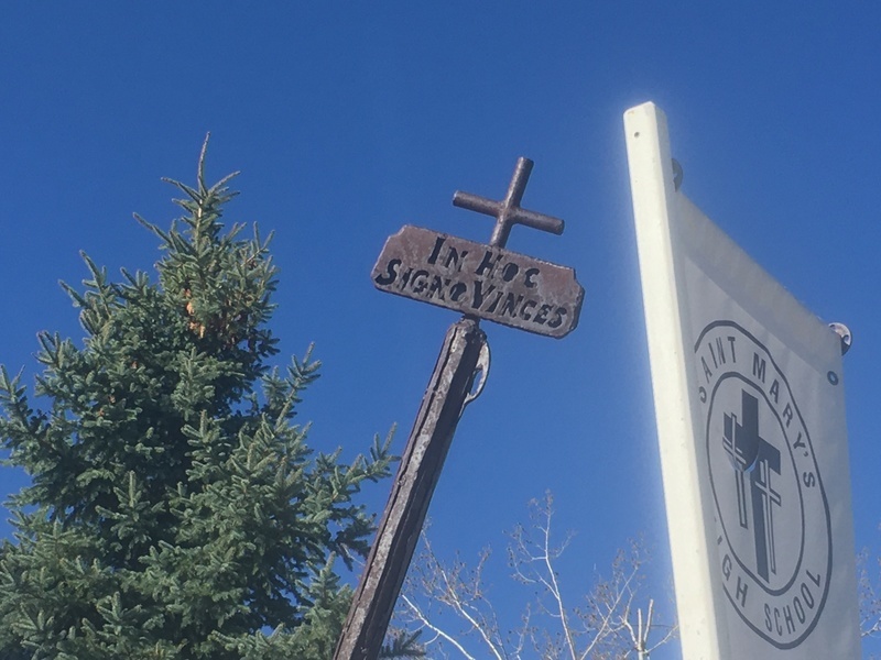 - WINNER. Congratulations to Megan Clavenna for being the first to answer yesterday's trivia question. What is the Latin inscription on Rusty? "In Hoc Signo Vinces." Translation: "In this sign, thou shalt conquer." The "sign" being the Cross of Christ. Picture of the Latin inscription attached. APOLOGIES for the picture getting stripped off the e-mail yesterday. Several of you pointed that out to me. It's not just students and teachers who are arguing with the technology...